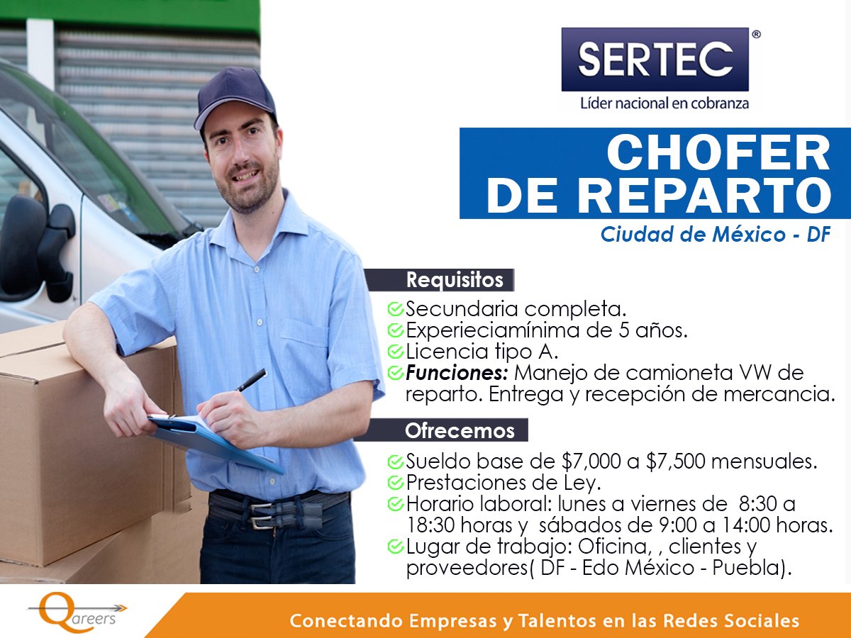 Activemos México! Solicitamos Chofer repartidor en Venustiano Carranza, Ciudad de México por $5600 | Segundamano.mx