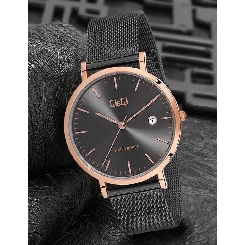 Reloj Q\u0026Q Rosa Rose Gold Black Negro Con Fechador Dama Mujer Grande | Shopee México